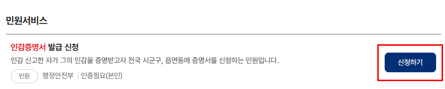 인감증명서 발급 신청하기 버튼을