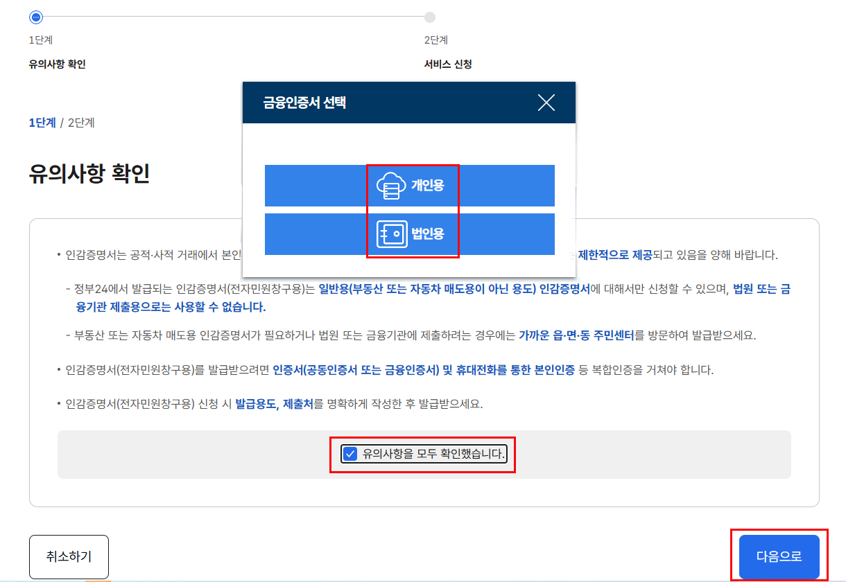 2.PC에서만 발급이 가능하며, 모바일 앱에서는