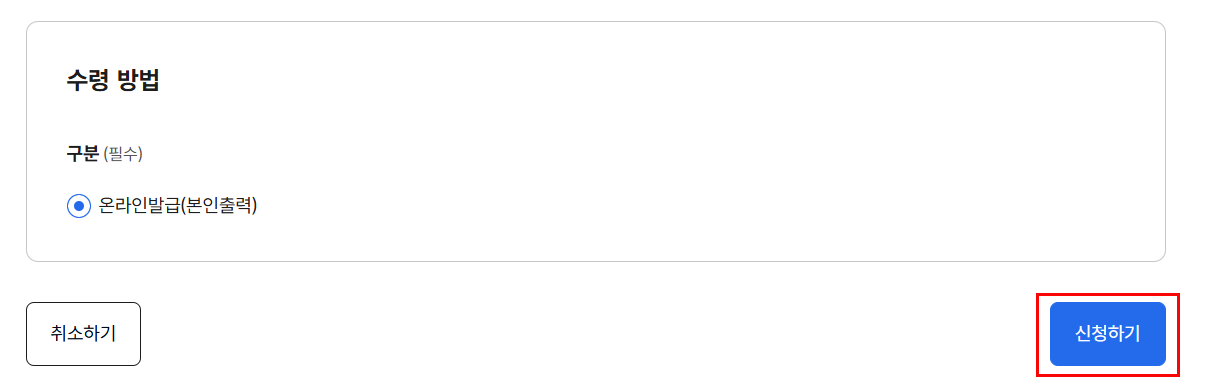 온라인 발급을 선택하고 신청하기
