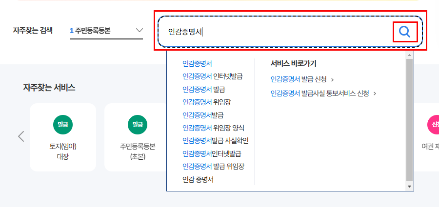 가운데 검색창에 인감증명서를