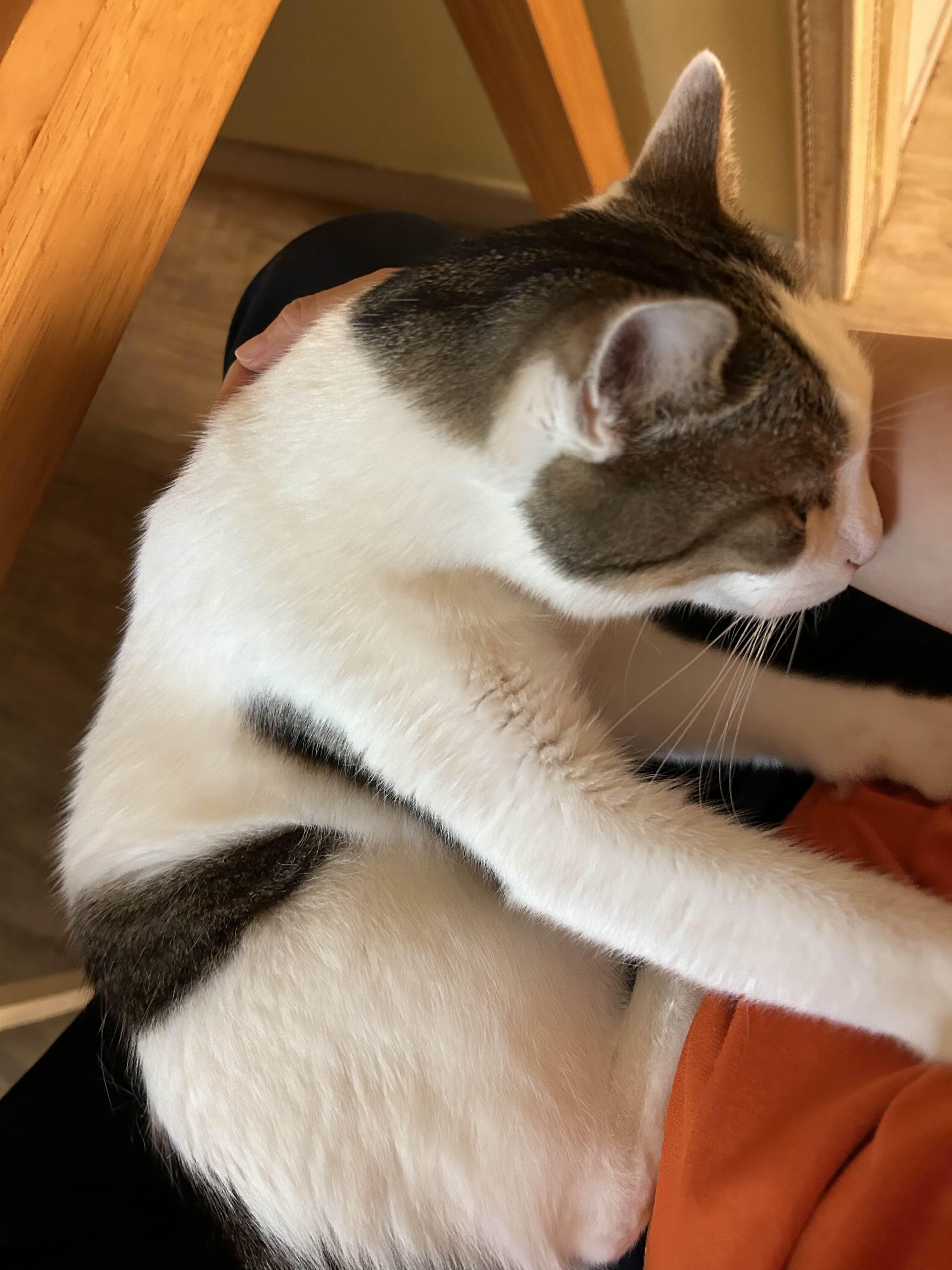 레오가 내 무릎에 누워서 꾹꾹이를 하는데