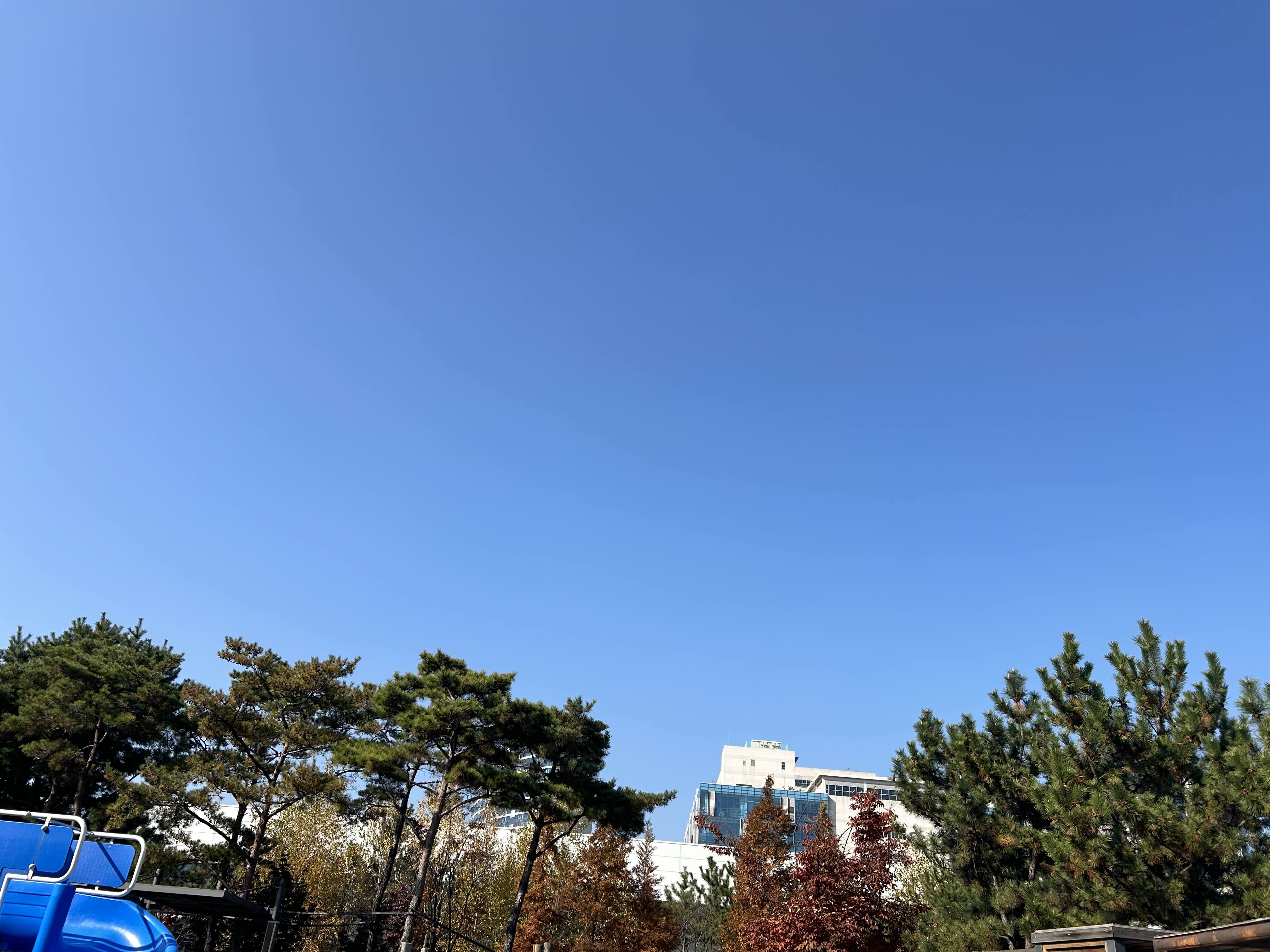 햇살 만끽하며 찍은 푸른 하늘 사진입니다